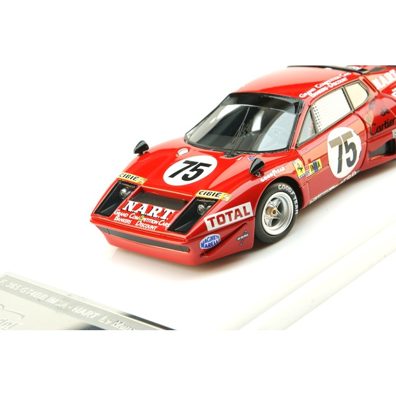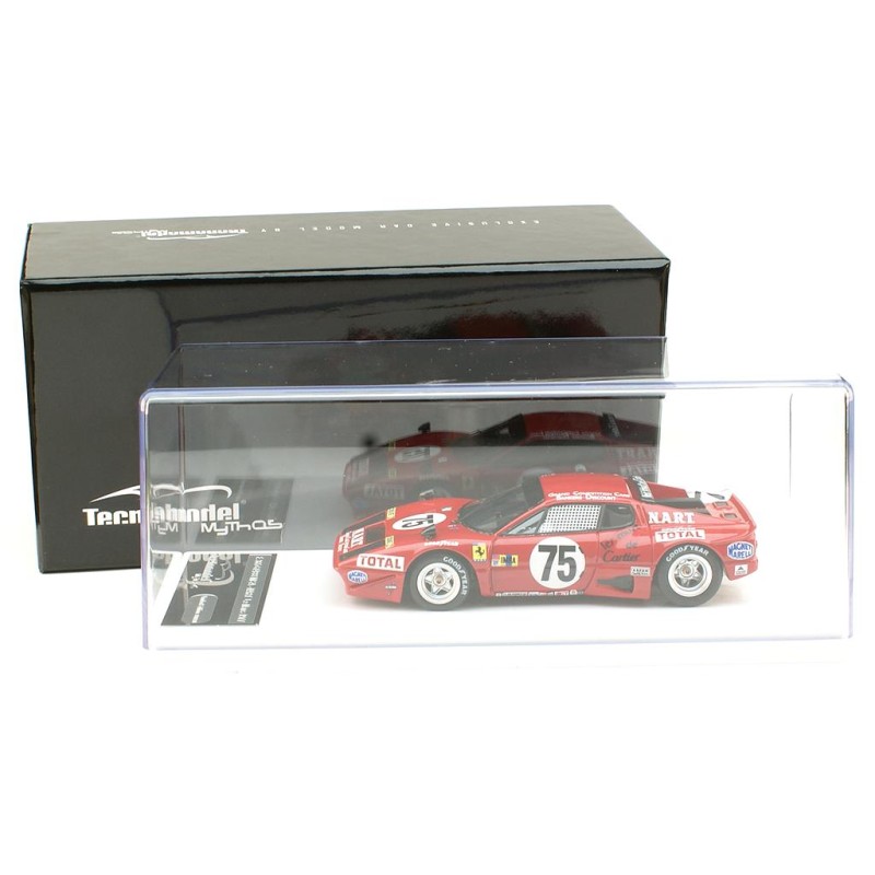 Miniature diecast Le Mans 1/43 de la Ferrari 365 GT4/BB 4.4L n 75 Team NART pilotée par Francois Migault - Lucien Guitteny aux 24 Heures du Mans 1977. Modèle réduit de voiture Tecnomodel TEC43-36B. Catalogue Miniatures automobile 24h Tecnomodel 2024. Maquette auto de collection.