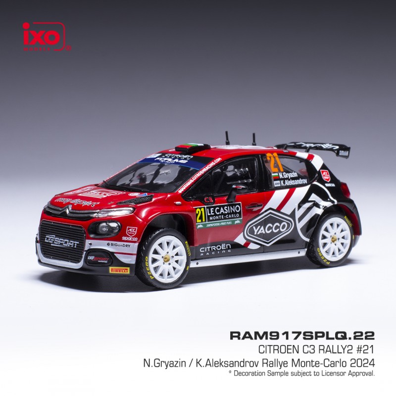 Citroen C3 Rally2 21 Rallye Monte Carlo 2024 N. Gryazin - K. Aleksandrov IXO RAM917