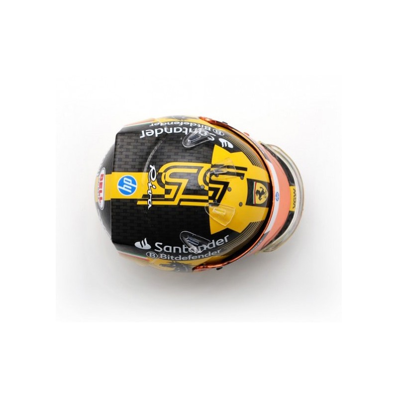 Casque Helmet 1/5 de Carlos Sainz Jr lors du Grand Prix d'Italie de Formule 1 2024 sur le circuit de Monza. Ferrari. Miniature helmet Spark LSHEL005. Maquette F1 de collection.