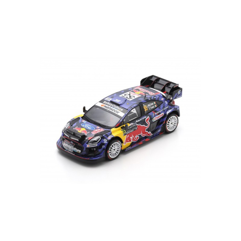 Miniature diecast rally 1/43 de la Ford Puma Rally1 n 55 M-sport Ford World Rally Team pilotée par Joshua Mcerlean - Eoin Treacy au Rallye Monte Carlo 2025. Modèle réduit de voiture de rallye Spark S6893. Catalogue Miniatures automobile Spark 2025. Maquette auto de collection.